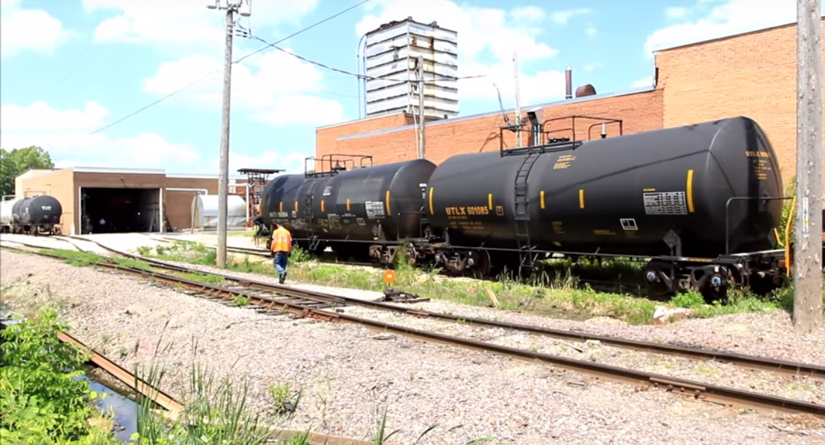Outside the facility, where the two tank cars sit there may well be unloading pipes through the wall of the building. They all appear to be AAR Type T (Tank) cars of class T105. In the video I can see NATX 190064 specifically. Because the primary business of the Batory group is sweeteners and so on, it is likely that the short tank cars are carrying corn syrup (HFCS) or something similar. If you intend to model the location I’d suggest adding steam lines at the unloading point to allow for operations in the cold Illinois winters.
