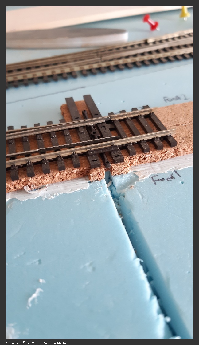 Trenching complete to the turnout, including the cutout for the movement of the rod to move the turnout