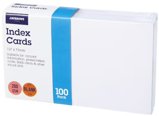 J Burrows Blank Index Cards