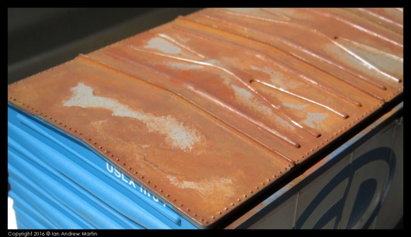 Rusty roof detail: This close-up shows the benefits of working up (from darker to lighter) rust colours. It provides a 3d effect to the rust that could otherwise be very flat.