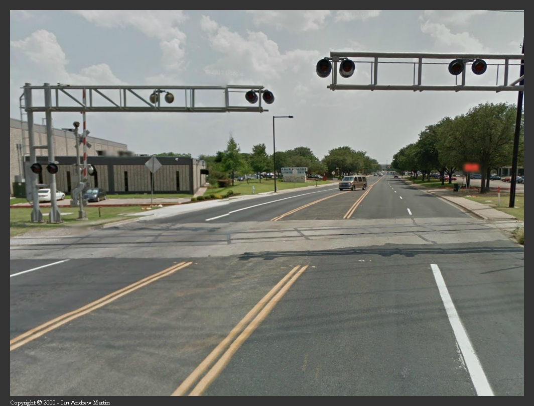 Grade crossing at Woodward Street. Ahead and left is the 4 Hands Home warehouse. The siding is to the left of the photo (out of shot)