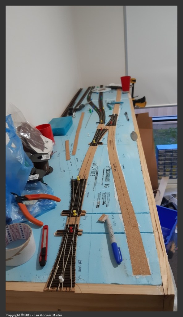 I’ve not been completely idle; just short of available time to write and blog and post stuff. I’ve yet to complete Part 3 – building trestles – but it’s close. For now I’d love to give you a quick update on where I’m up to: putting down cork and track laying.