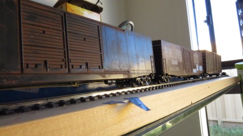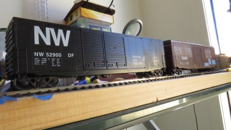 I mentioned a couple of posts ago I wrote about simplifying my modelling, without compromising my vision of what I want to achieve with my modelling. I believe that by simplifying my modelling style that should not mean accepting less. I tend to overthink everything, over detail (hyper detail) and in the end never finish anything to the standard I want to – think contest models of everything. But no more however. In that spirit I’ve been working toward cost-effective updates to my Athearn BB and other boxcars that I’ve collected over the years. To that end last week I found (for the second time at least) the post by Tony Thompson on his blog about providing partial yet effective brake rigging. This week I’ve gotten that done on several cars, and what a difference I feel it makes.